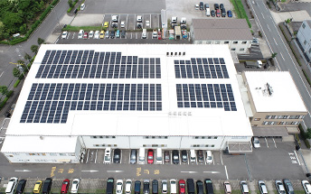 - ●200kW自家消費型太陽光発電の稼働による、年間約63tonものCO2の排出量削減
